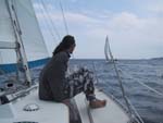 Bald schon kommt wieder richtig Wind auf und wir üben uns wieder einmal darin, das Boot in fetter Schräglage zu halten. Als Zadar in Sichtweite kommt, frischt der Wind nochmals auf und die Schräglagen werden heftiger. Auch die 'Moonwalker' hängt fast mit der Bordkante am Wasser.